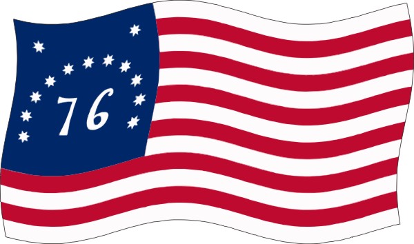 The Bennington flag is a version of the American Flag associated with the American Revolution Battle of Bennington from which it derives its name . Like many Revolution era flags, the Bennington features 13 stars and 13 stripes, symbolic of the 13 American colonies that were in a state of rebellion against Great Britain. The Bennington version is easily identified by a large '76' in the canton, recalling the year 1776, when the Declaration of Independence was signed. Another distinctive feature of the Bennington flag is the arrangement of the 13 stripes, with white being outermost (rather than red being outermost as in the current flag). Also, its stars have seven points each (instead of the current five) and the blue canton is taller than on other flags, spanning nine instead of seven of the thirteen stripes.