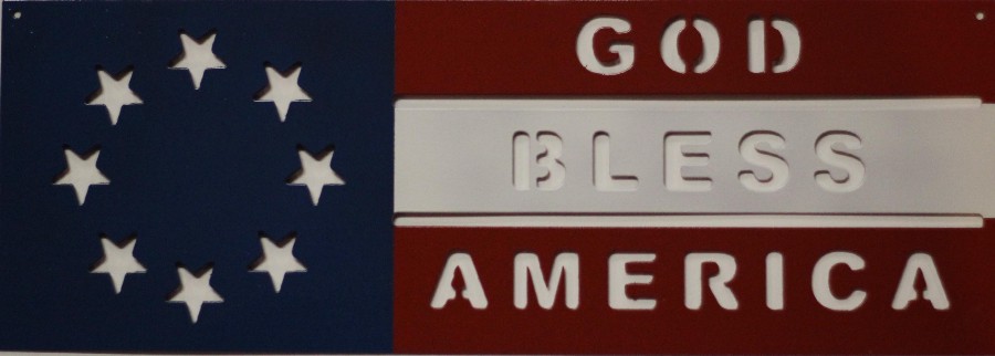 All flags are cut from 16 GA steel and finished with a rust resistant epoxy primer and several coats of industrial acrylic enamel paint. Rubber grommets are installed in the corners for mounting. Flags are suitable for either indoor or outdoor use. Stars are cut out of flag. The canton (blue field) and stripes are painted on ONE side only. Flag is meant to be displayed in the horizontal postion only. If you want to hang it vertically, please notify us and we will paint it so the star field is displayed on the left. If you want the canton and stripes on both sides, add $50.00 for 18", $75.00 for 24", or $100.00 for 36". Flag sizes are quoted to the closest inch. Unless listed, multicolored items only have the multiple colors on one side with the reverse side in the base coat (major color).